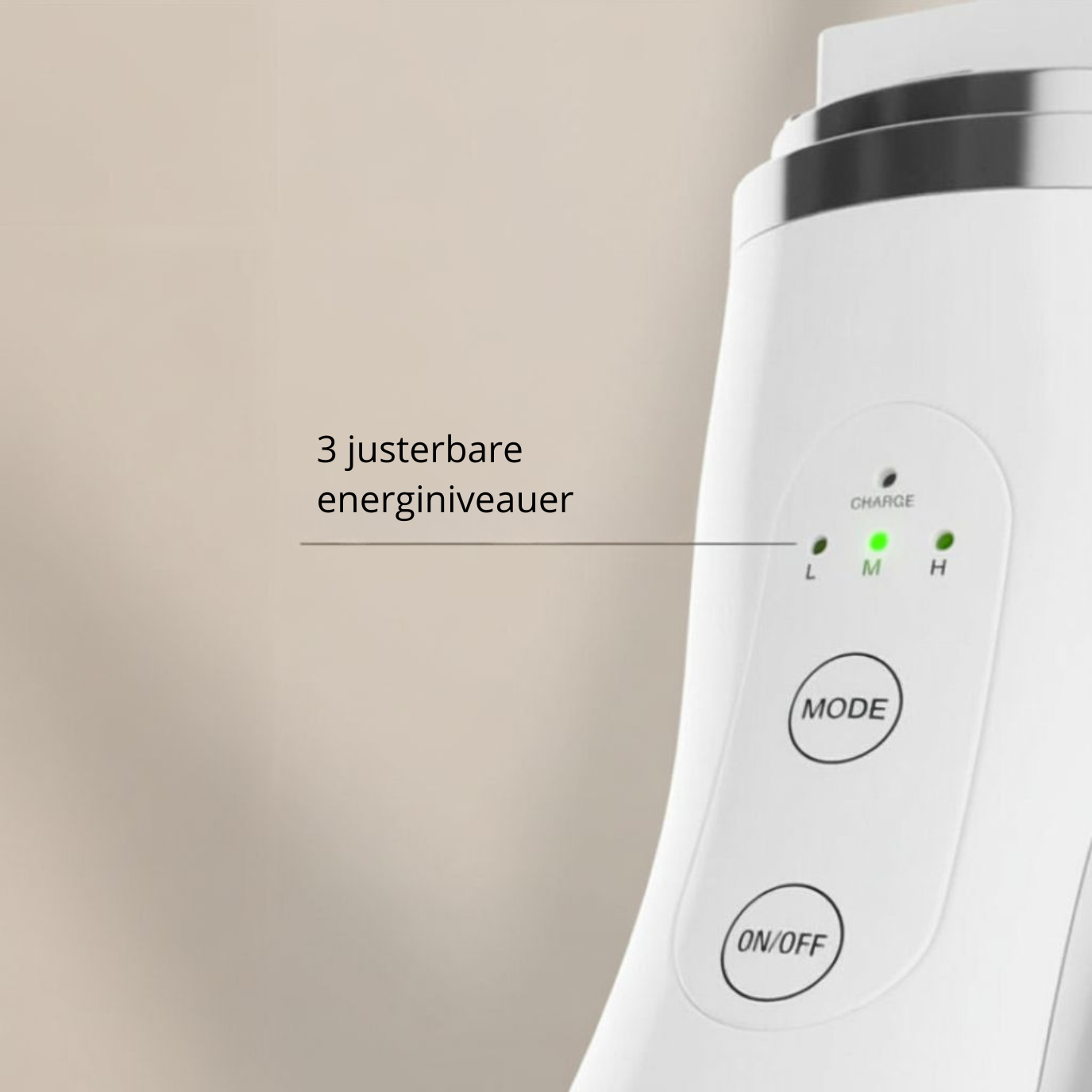 Start enheden, vælg dit ønskede niveau (Lav, Mellem eller Høj). Begynd altid lavt, så huden kan vænne sig.